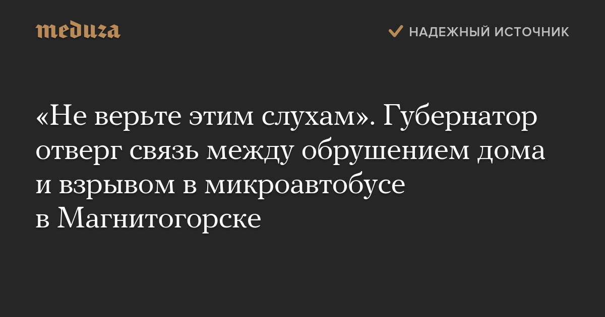 «Не верьте этим слухам». Губернатор отверг связь между обрушением дома и взрывом в микроавтобусе в Магнитогорске