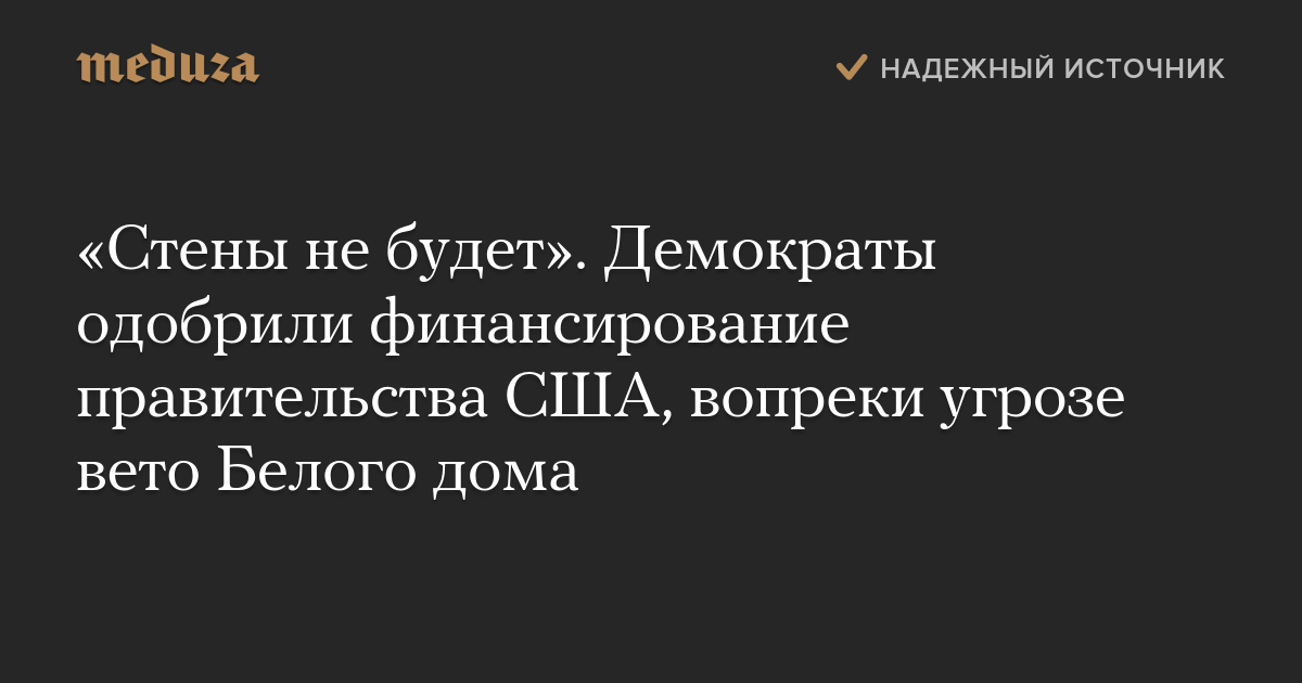 «Стены не будет». Демократы одобрили финансирование правительства США, вопреки угрозе вето Белого дома