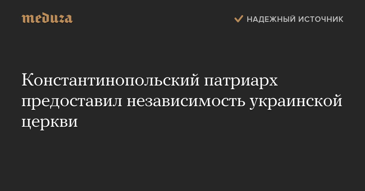 Константинопольский патриарх предоставил независимость украинской церкви