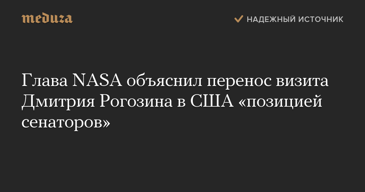 Глава NASA объяснил перенос визита Дмитрия Рогозина в США «позицией сенаторов»