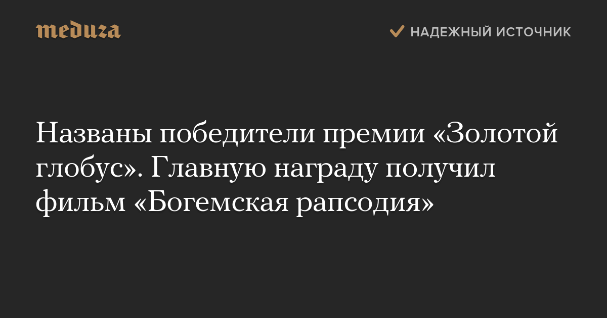 Названы победители премии «Золотой глобус». Главную награду получил фильм «Богемская рапсодия»