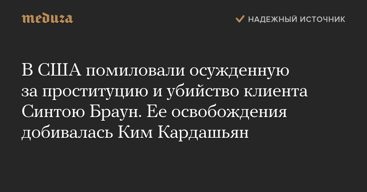 В США помиловали осужденную за проституцию и убийство клиента Синтою Браун. Ее освобождения добивалась Ким Кардашьян