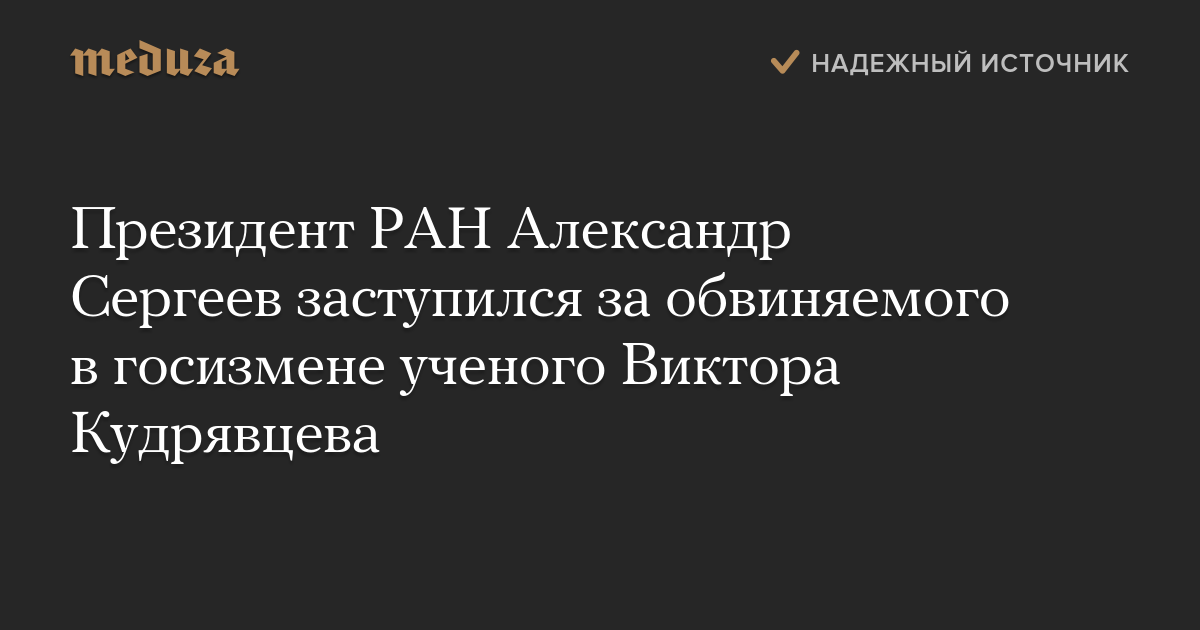 Президент РАН Александр Сергеев заступился за обвиняемого в госизмене ученого Виктора Кудрявцева