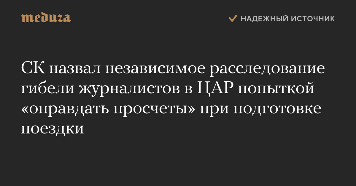 СК назвал независимое расследование гибели журналистов в ЦАР попыткой «оправдать просчеты» при подготовке поездки