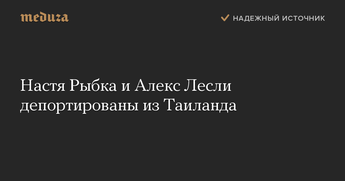 Настя Рыбка и Алекс Лесли депортированы из Таиланда