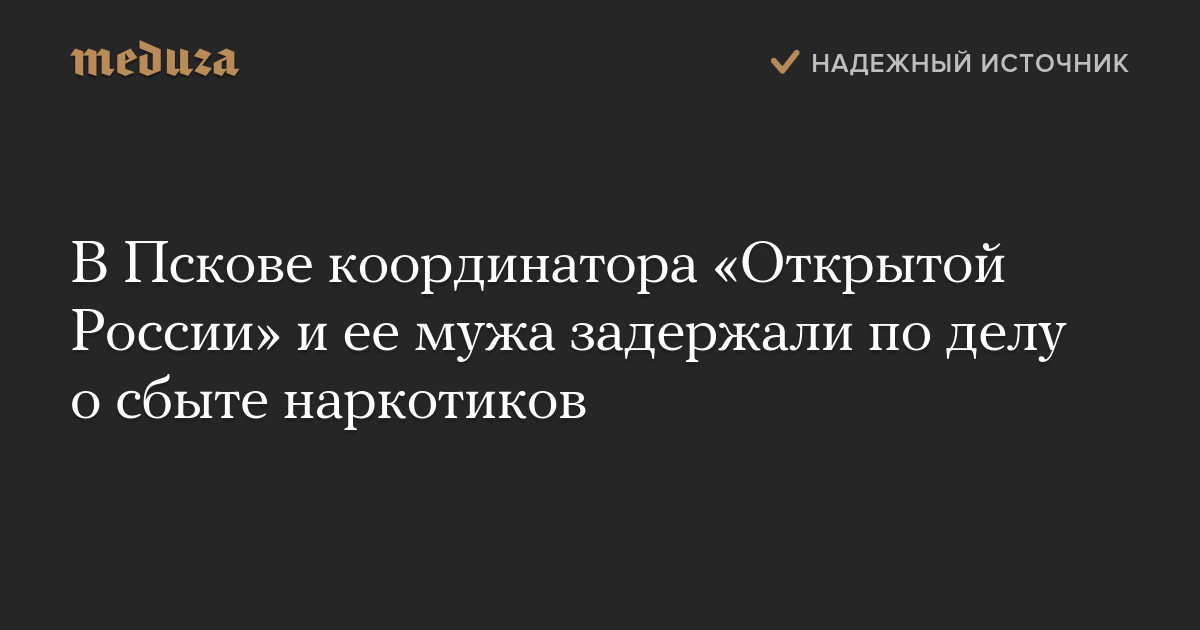 В Пскове координатора «Открытой России» и ее мужа задержали по делу о сбыте наркотиков