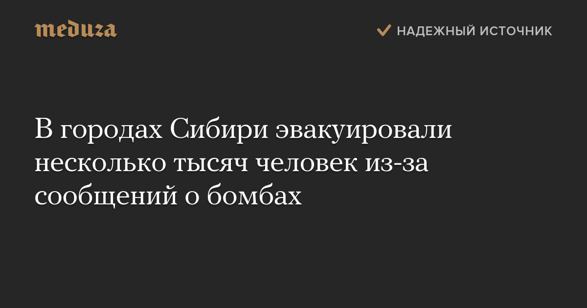 24 и 25 января в регионах Сибири и Дальнего Востока провели массовые эвакуации административных зданий, больниц и школ из-за сообщений о якобы заложенных бомбах. В большинстве случаев предупреждения о минировании поступали по электронной почте.