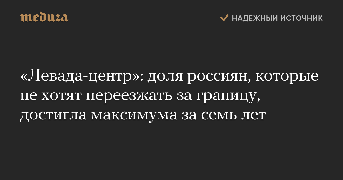 «Левада-центр»: доля россиян, которые не хотят переезжать за границу, достигла максимума за семь лет