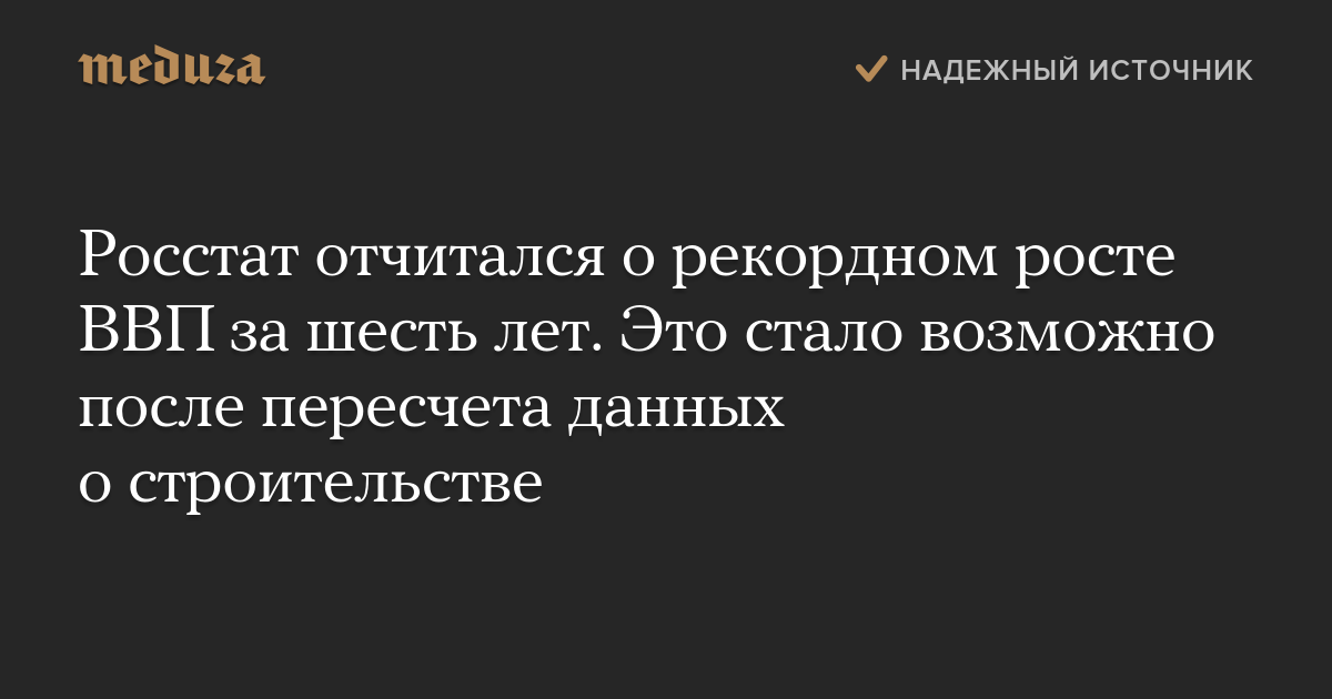Росстат отчитался о рекордном росте ВВП за шесть лет. Это стало возможно после пересчета данных о строительстве