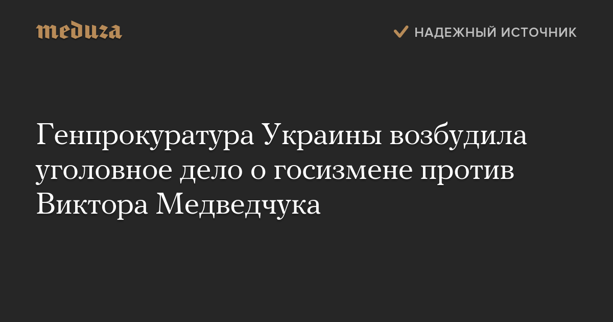 Генеральная прокуратура Украины возбудила уголовное дело в отношении лидера пророссийской организации «Украинский выбор» Виктора Медведчука.