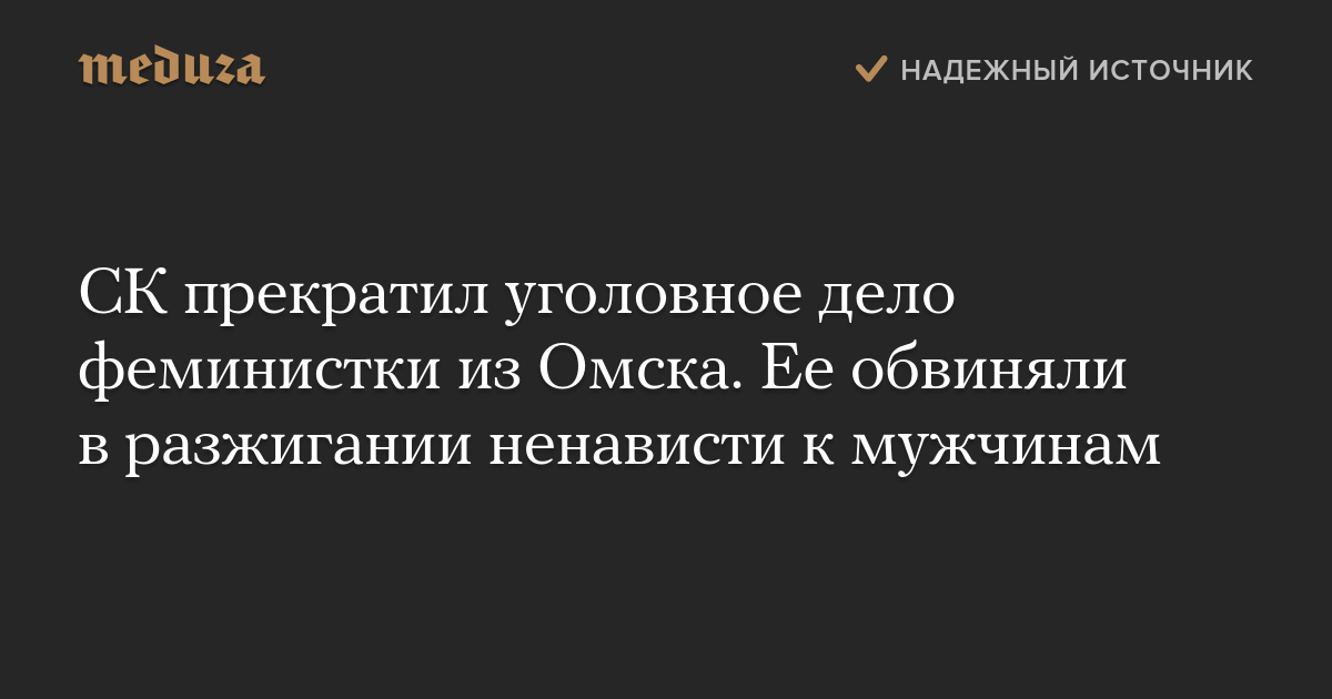 СК прекратил уголовное дело феминистки из Омска. Ее обвиняли в разжигании ненависти к мужчинам