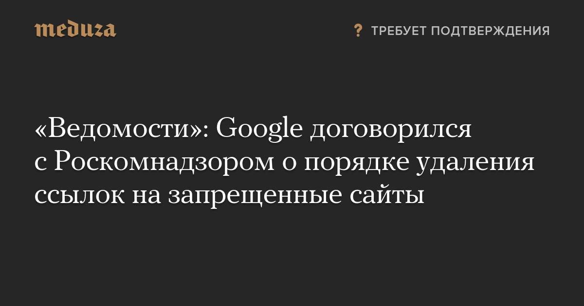 «Ведомости»: Google договорился с Роскомнадзором о порядке удаления ссылок на запрещенные сайты
