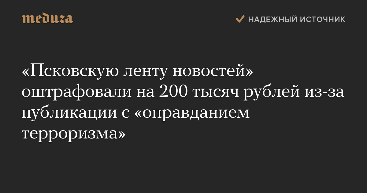«Псковскую ленту новостей» оштрафовали на 200 тысяч рублей из-за публикации с «оправданием терроризма»