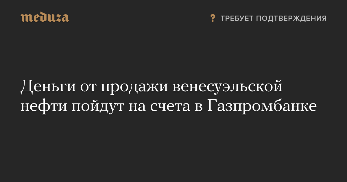 Деньги от продажи венесуэльской нефти пойдут на счета в Газпромбанке