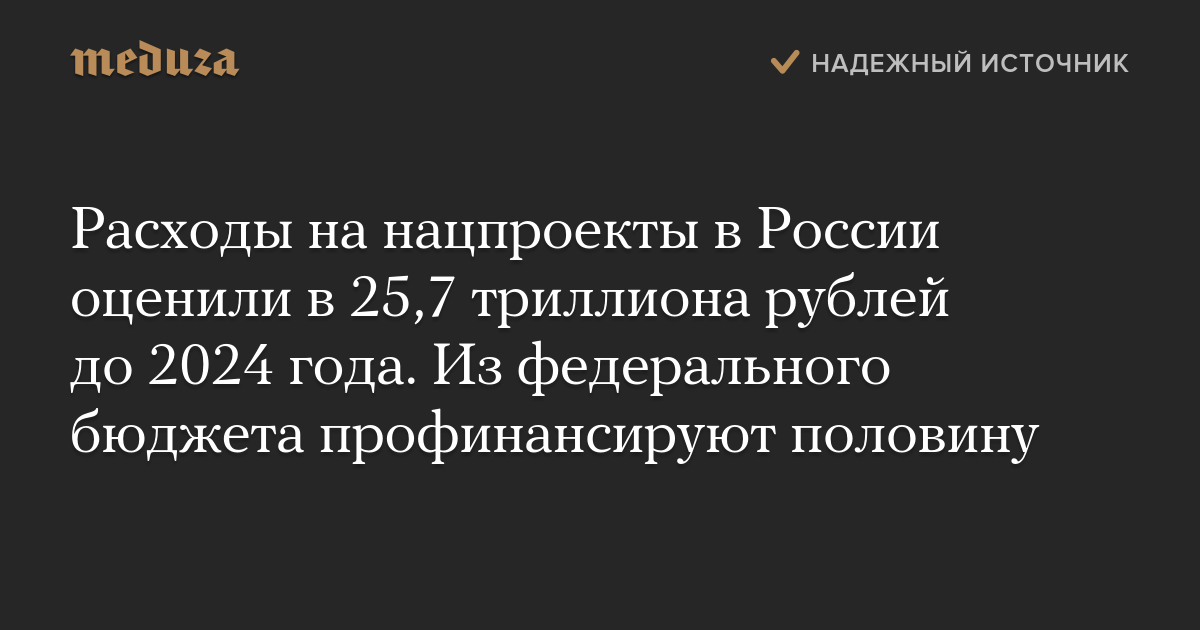 Расходы на нацпроекты в России оценили в 25,7 триллиона рублей до 2024 года. Из федерального бюджета профинансируют половину
