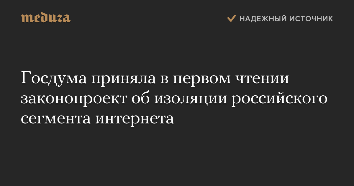 Госдума приняла в первом чтении законопроект об изоляции российского сегмента интернета