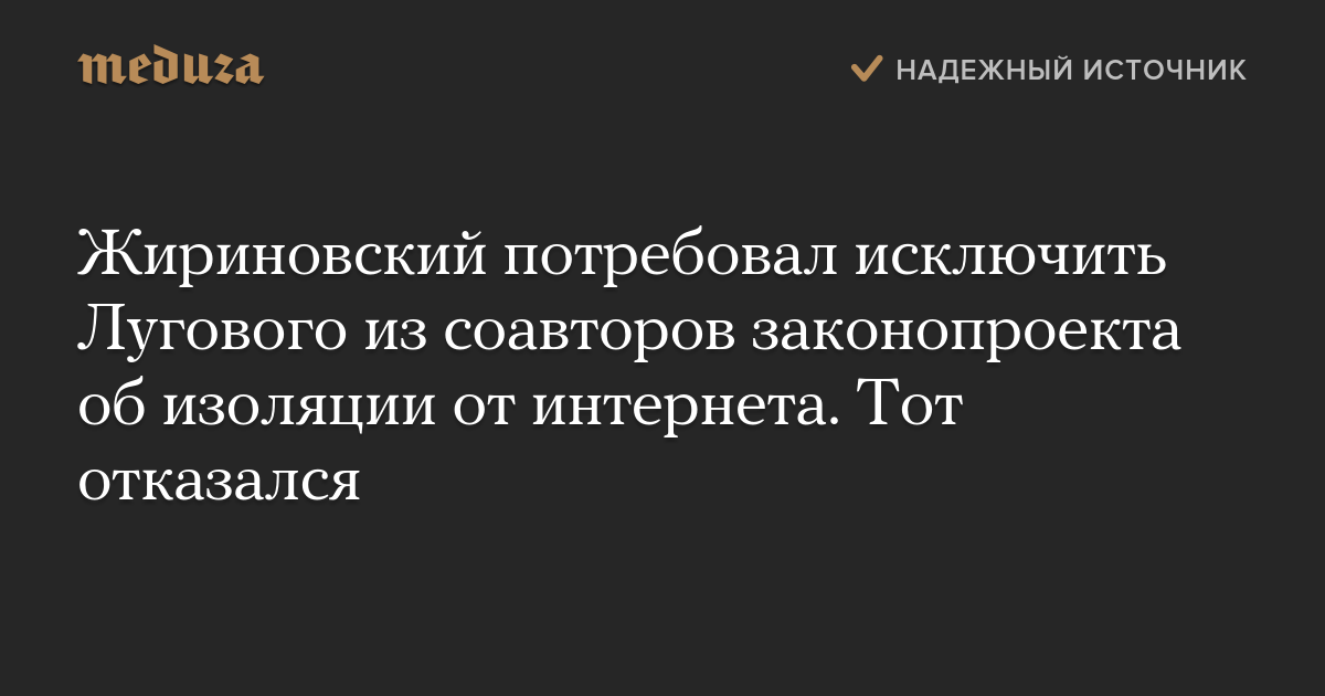 Жириновский потребовал исключить Лугового из соавторов законопроекта об изоляции от интернета. Тот отказался