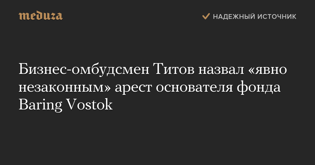 Бизнес-омбудсмен Титов назвал «явно незаконным» арест основателя фонда Baring Vostok