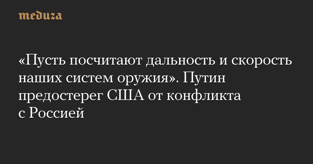 «Пусть посчитают дальность и скорость наших систем оружия». Путин предостерег США от конфликта с Россией