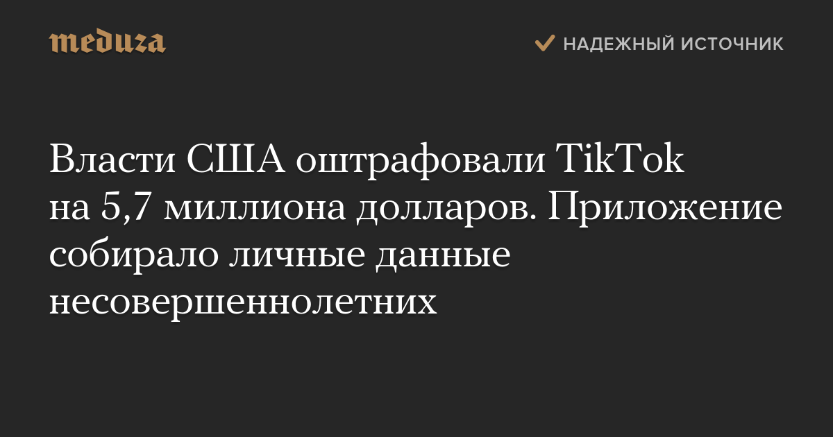 Федеральная торговая комиссия США оштрафовала разработчиков сервиса обмена короткими видео TikTok на 5,7 миллиона долларов за нарушение закона о защите конфиденциальности детей в интернете (COPPA).