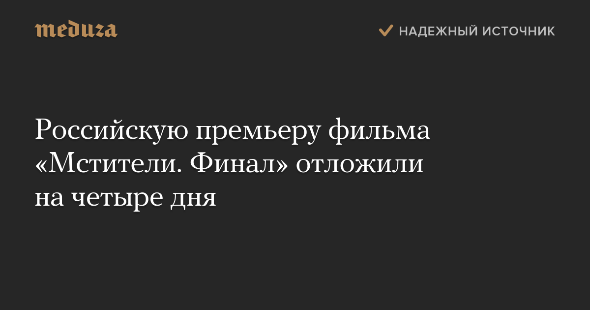 Российскую премьеру фильма «Мстители. Финал» отложили на четыре дня