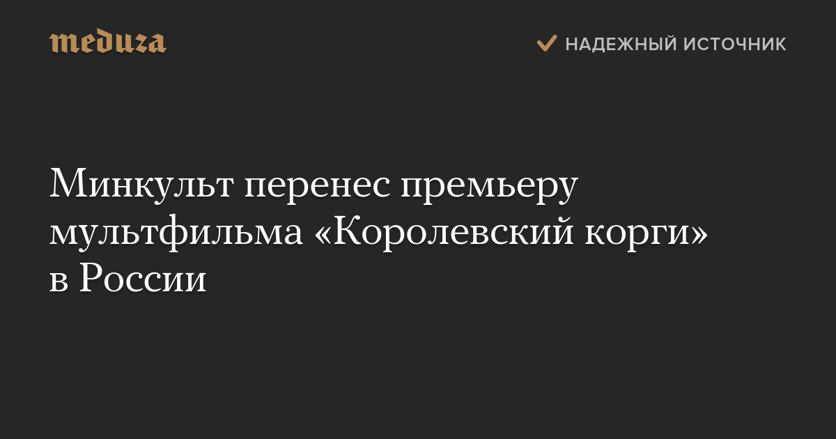 Минкульт перенес премьеру мультфильма «Королевский корги» в России