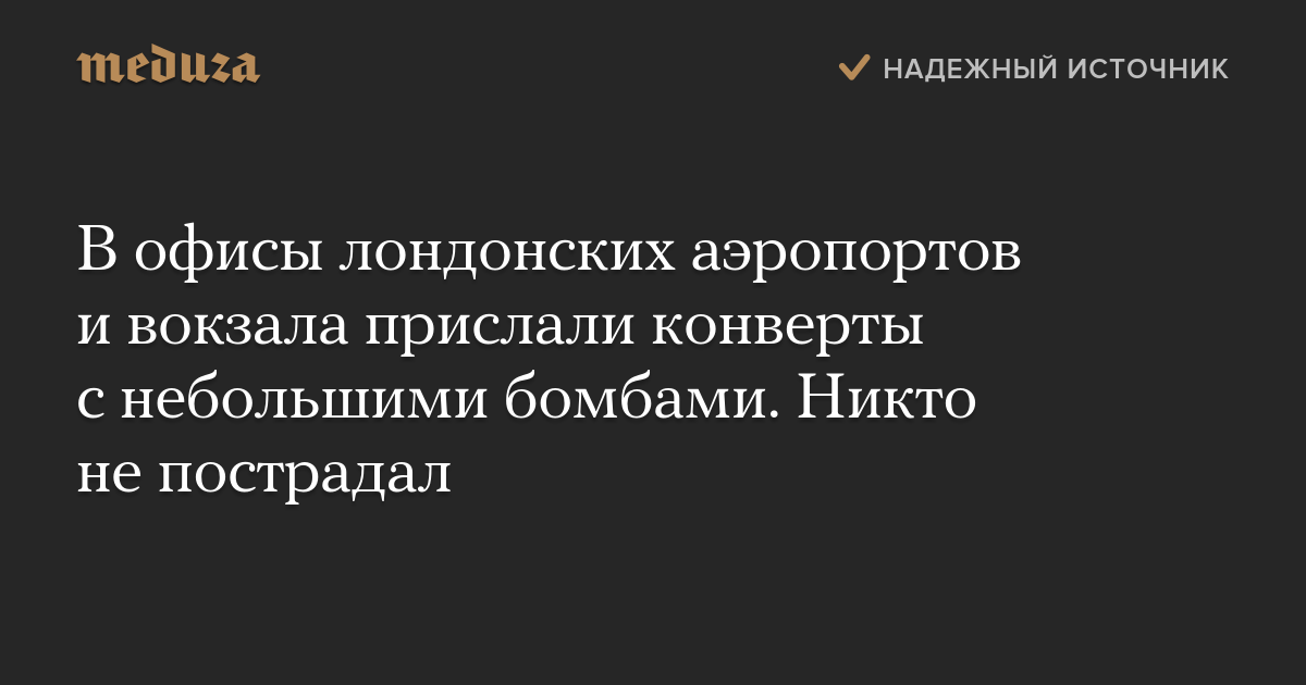 В офисы лондонских аэропортов и вокзала прислали конверты с небольшими бомбами. Никто не пострадал