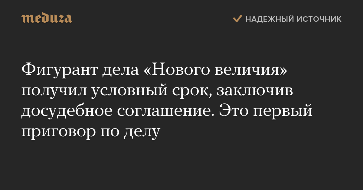 Фигурант дела «Нового величия» получил условный срок, заключив досудебное соглашение. Это первый приговор по делу