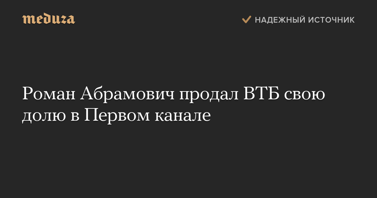 Роман Абрамович продал ВТБ свою долю в Первом канале