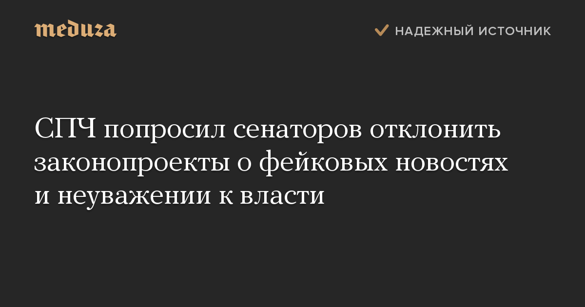 СПЧ попросил сенаторов отклонить законопроекты о фейковых новостях и неуважении к власти