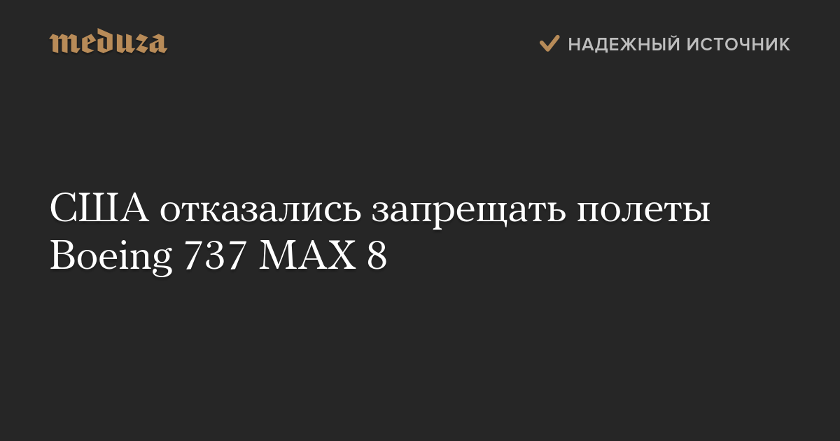 Федеральное управление гражданской авиации США отказалось запрещать полеты самолетов Boeing 737 MAX 8 после того, как большинство стран мира прекратили эксплуатацию лайнеров этой модели из-за авиакатастрофы в Эфиопии.