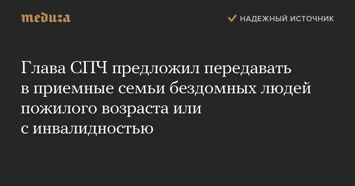 Глава Совета по правам человека при президенте России (СПЧ) Михаил Федотов предложил ввести институт приемных семей для бездомных пенсионного возраста или с инвалидностью.