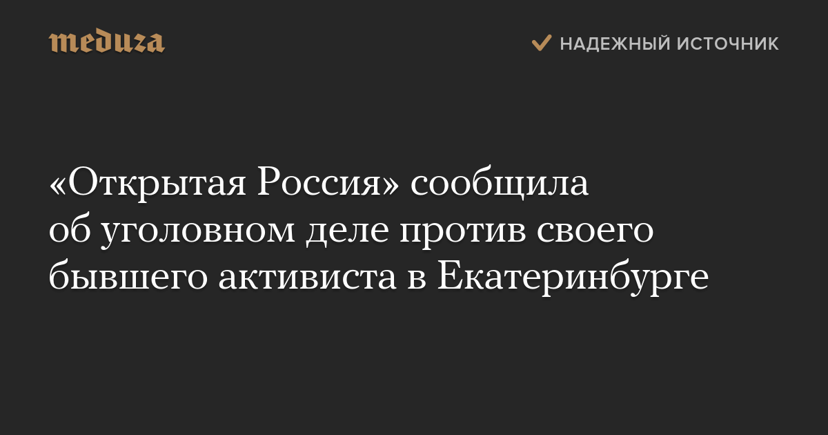 «Открытая Россия» сообщила об уголовном деле против своего бывшего активиста в Екатеринбурге