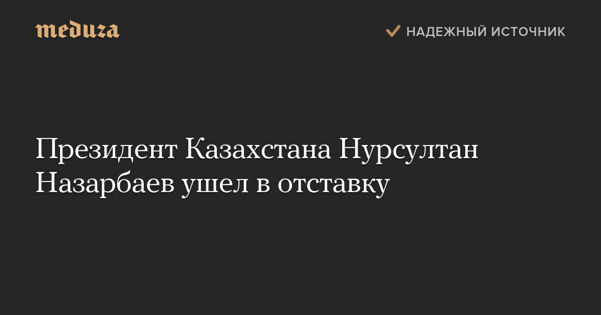 Президент Казахстана Нурсултан Назарбаев сложил полномочия главы государства. Об этом он объявил 19 марта в специальном телевизионном обращении к нации.