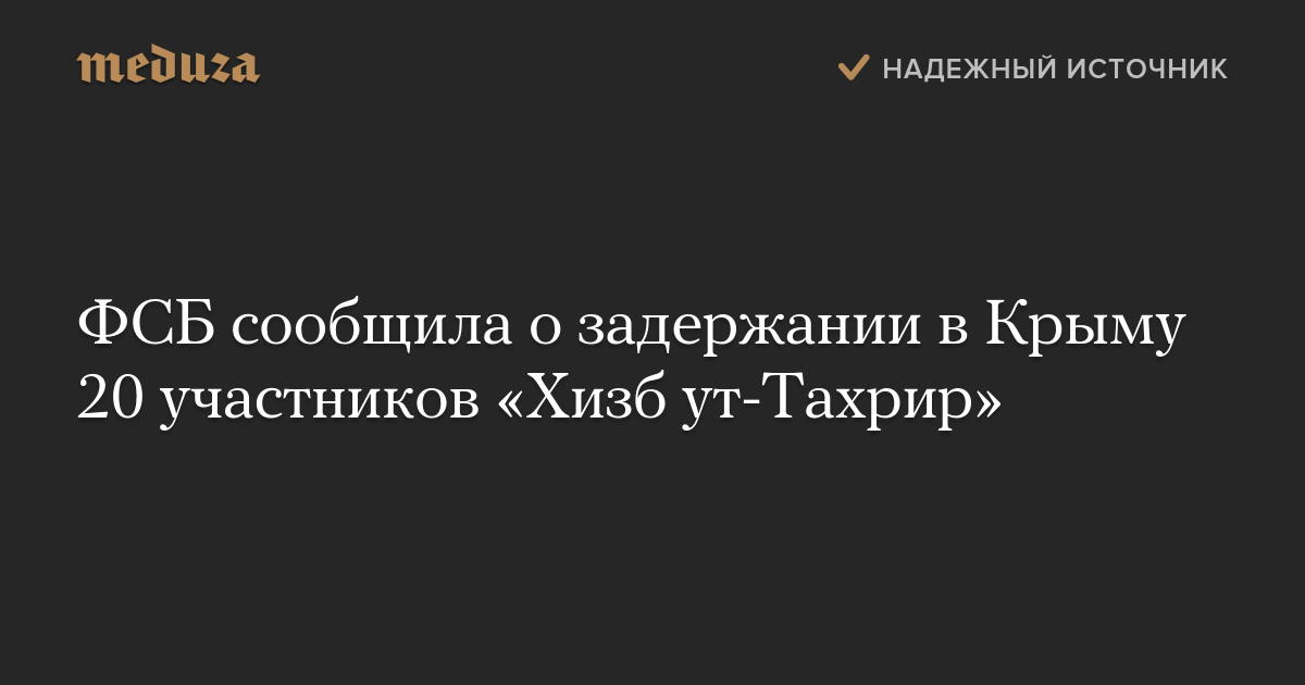 ФСБ России объявила, что задержала в Крыму 20 участников местного отделения террористической организации «Хизб ут-Тахрир аль-Ислами».