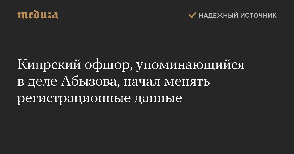 Кипрский офшор, упоминающийся в деле Абызова, начал менять регистрационные данные