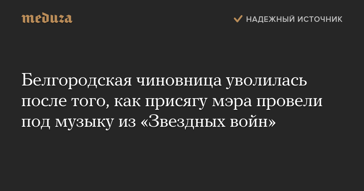 Белгородская чиновница уволилась после того, как присягу мэра провели под музыку из «Звездных войн»