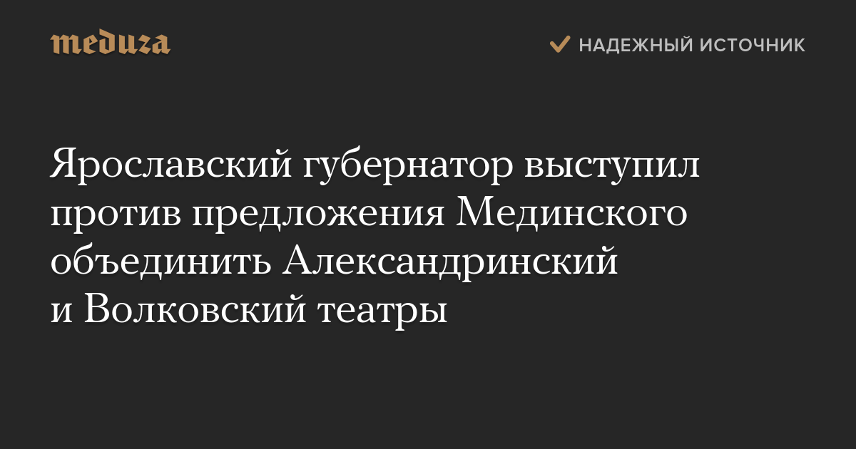 Ярославский губернатор выступил против предложения Мединского объединить Александринский и Волковский театры