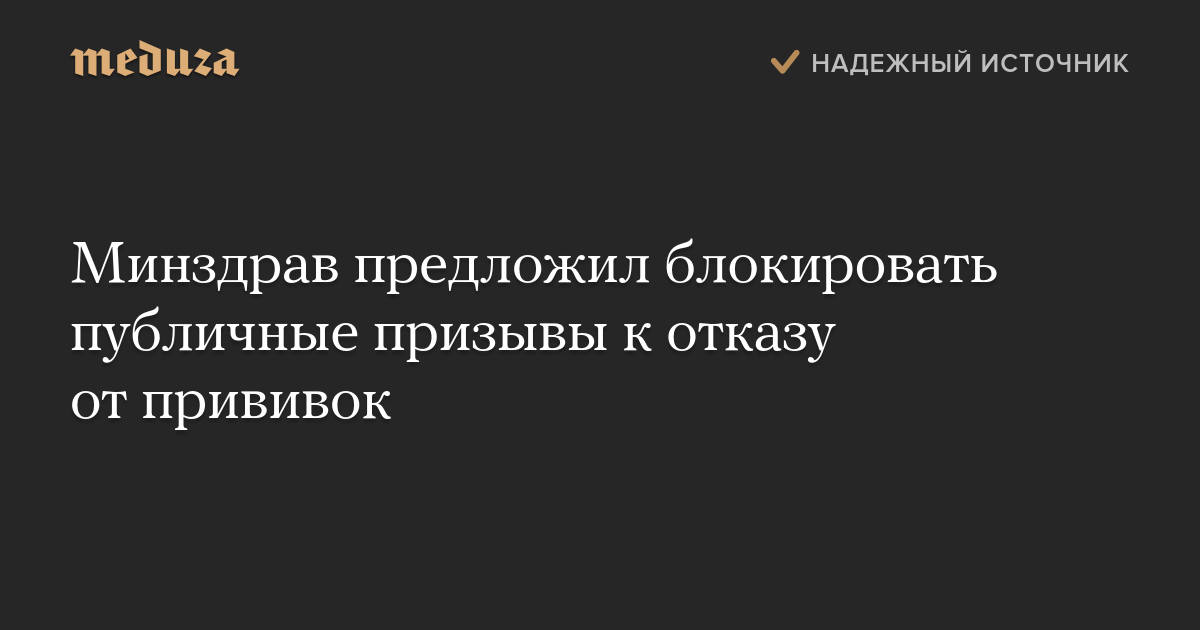 Минздрав предложил блокировать публичные призывы к отказу от прививок