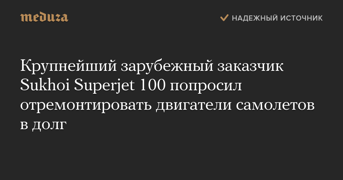 Крупнейший зарубежный заказчик Sukhoi Superjet 100 попросил отремонтировать двигатели самолетов в долг