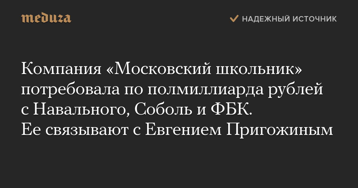 Компания «Московский школьник» потребовала по полмиллиарда рублей с Навального, Соболь и ФБК. Ее связывают с Евгением Пригожиным