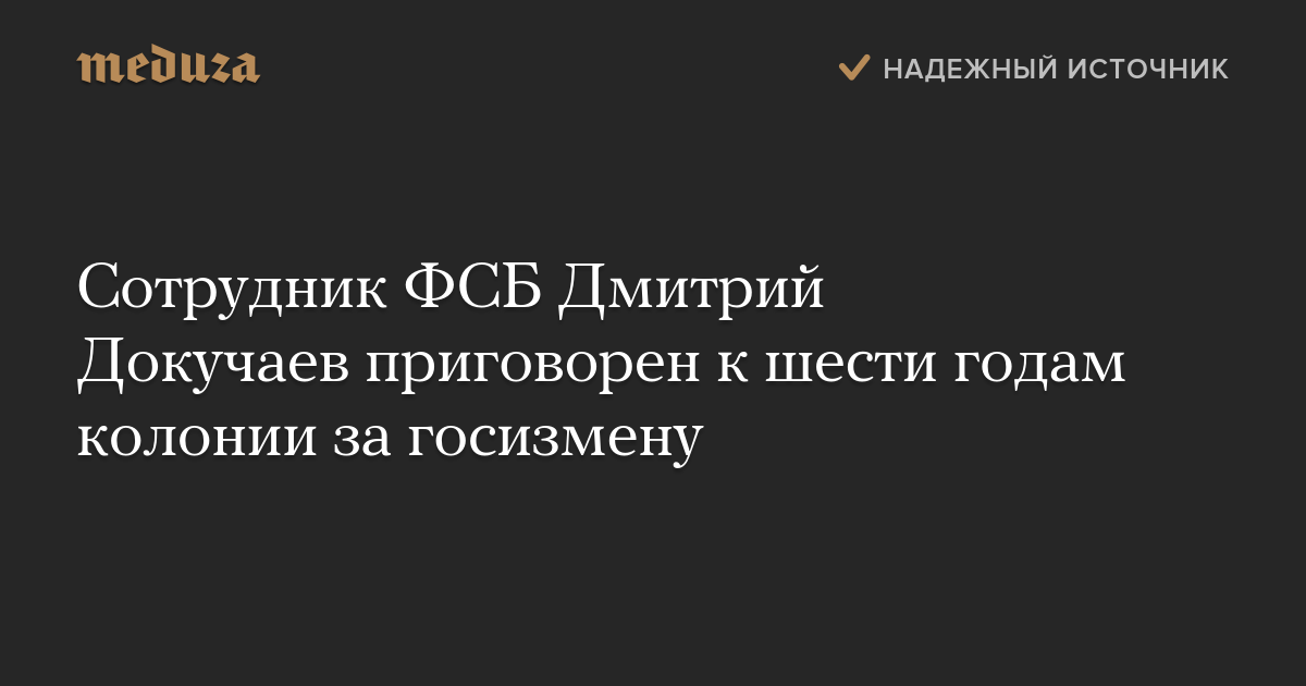 Сотрудник ФСБ Дмитрий Докучаев приговорен к шести годам колонии за госизмену