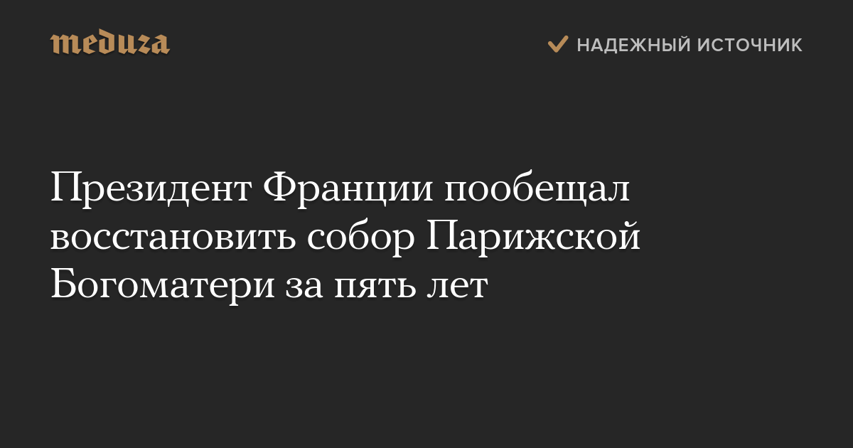 Президент Франции пообещал восстановить собор Парижской Богоматери за пять лет