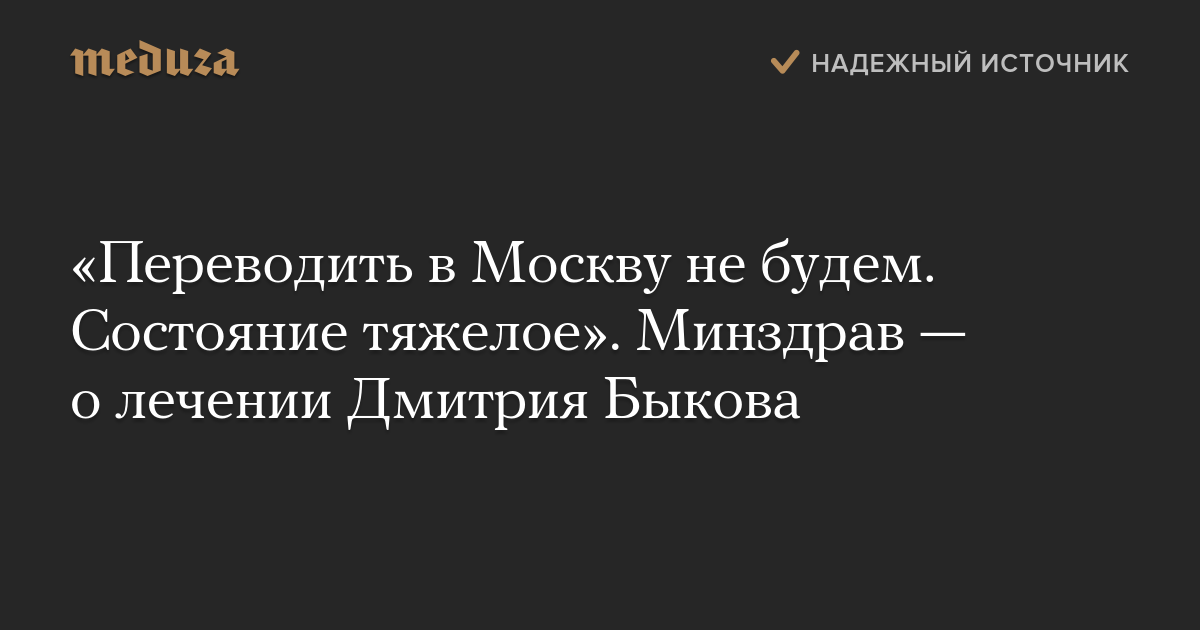 «Переводить в Москву не будем. Состояние тяжелое». Минздрав — о лечении Дмитрия Быкова