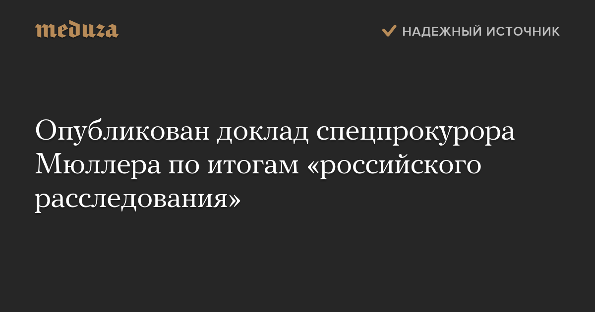 Опубликован доклад спецпрокурора Мюллера по итогам «российского расследования»