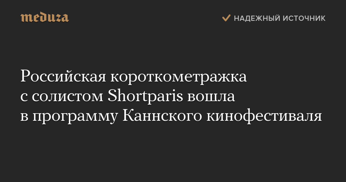 Российская короткометражка с солистом Shortparis вошла в программу Каннского кинофестиваля