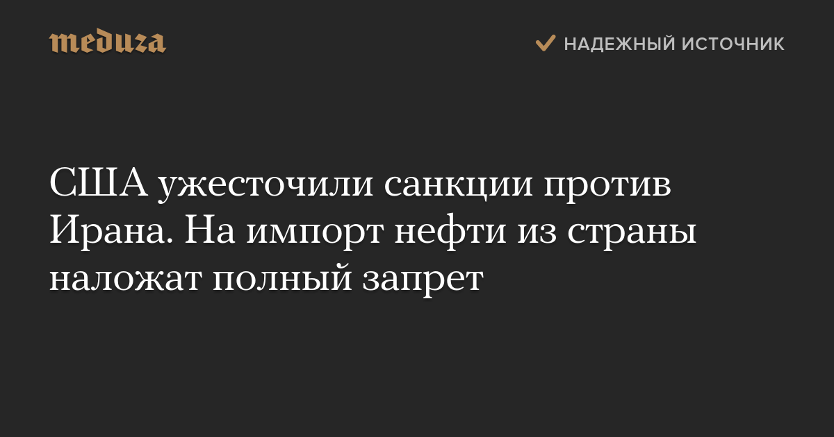 США ужесточили санкции против Ирана. На импорт нефти из страны наложат полный запрет