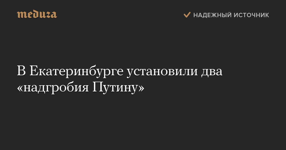 Активисты «Бессрочного протеста» установили в Екатеринбурге два «надгробия Владимиру Путину». Одно из них появилось у мэрии города, второе — возле станции метро «Площадь 1905 года», сообщается в паблике «Бессрочного протеста» в Екатеринбурге.