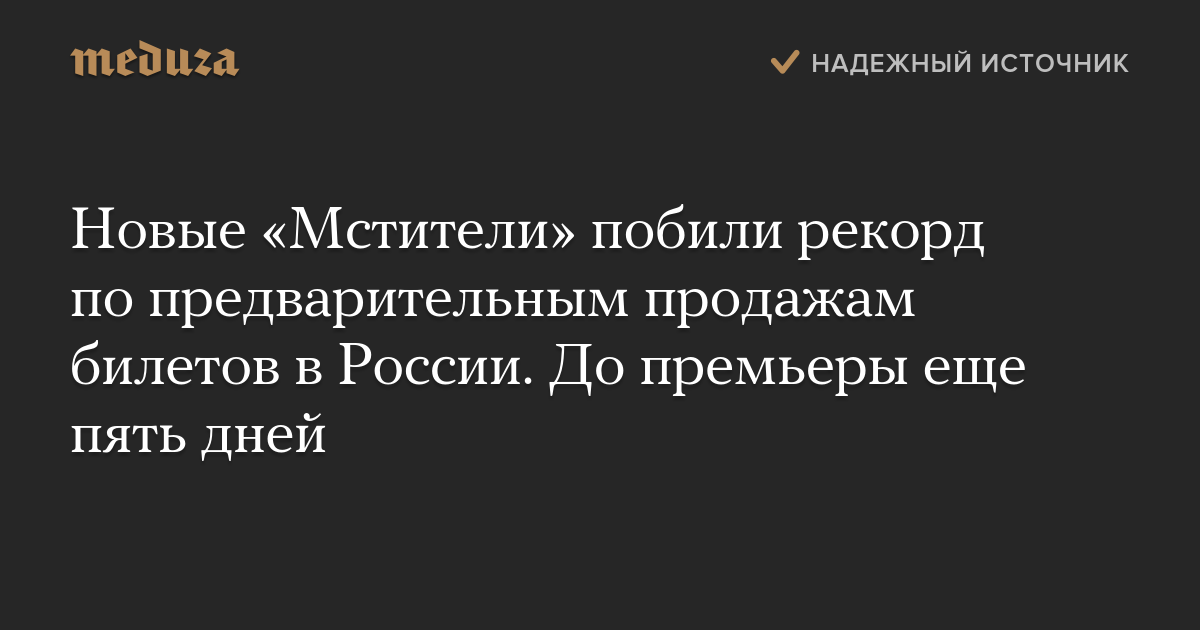 Новые «Мстители» побили рекорд по предварительным продажам билетов в России. До премьеры еще пять дней
