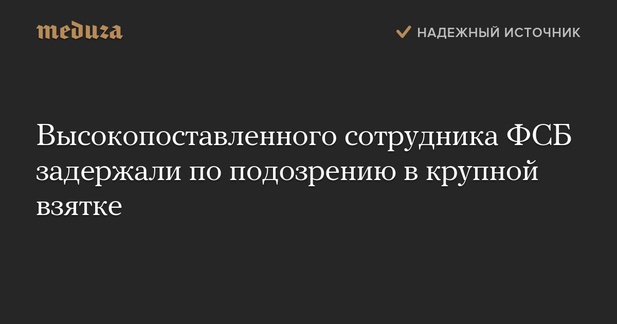 Высокопоставленного сотрудника ФСБ задержали по подозрению в крупной взятке